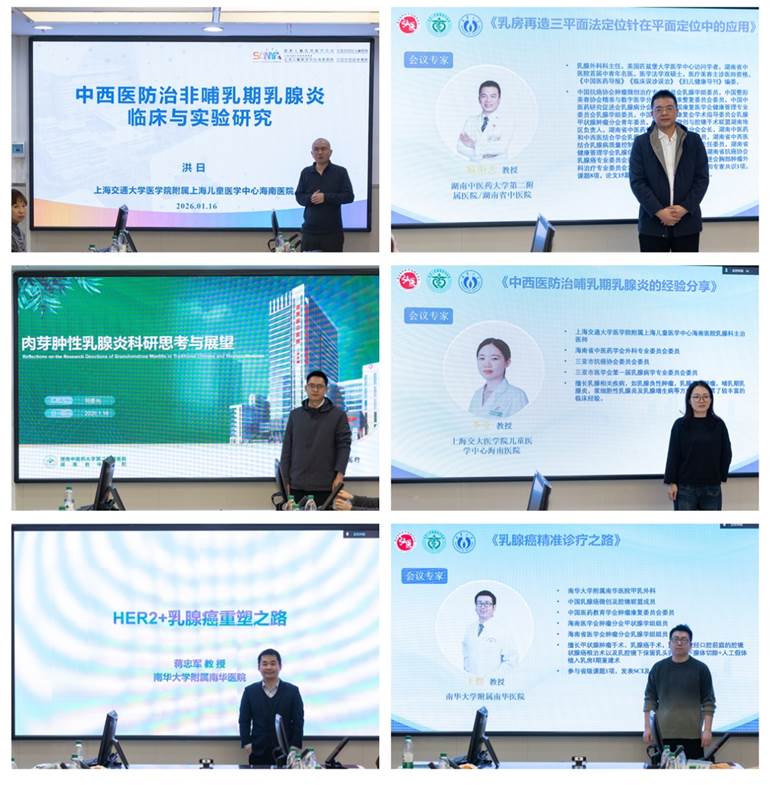 专题报告环节中,来自上海交通大学医学院附属儿童医学中心海南医院、湖南中医药大学第二附属医院、厦门大学、南华大学等多家医疗与科研机构的专家学者围绕乳腺及甲状腺疾病的中西医结合诊疗策略与前沿研究进展作了系列精彩报告。内容既涵盖炎症调控机制、肿瘤精准治疗、术后功能康复的中西医协同路径,也涉及蛋白质组学、分子影像探针等新技术在疾病机理探索与靶向治疗中的应用。报告兼具科学前瞻性与临床实用性,系统展示了当前该领域的研究热点与创新实践。